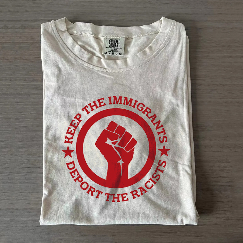 Keep Immigrants Deport Racists Racerback T-shirt
